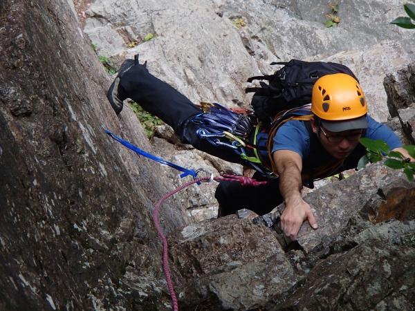 核心は3ピッチ目。後半、プロテクションが少ないので、今回はカム(キャメロット#1)を使ってみました。