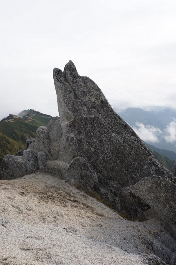 一日目はほぼガスがでていて、燕岳の山頂からちらっと槍ヶ岳がみえただけでした。