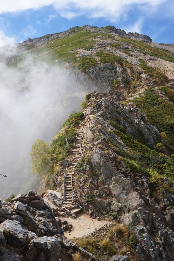 - 前日までの雨で多少ぬかるみがありました。燕岳は登りやすく、二日目の常念岳までは稜線歩きが続き気持ちのいいコースです。