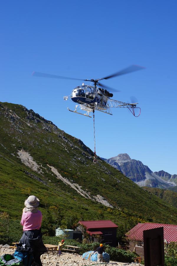 三日目の朝は荷運びのヘリコプターも間近で見られたり楽しかったです!下山後はタクシーで中房まで戻り、有明温泉へ。26日は風呂の日で、半額で温泉に入れました^^