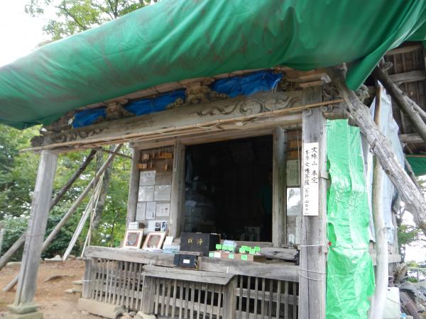 水はここでつめておく。 ここから道は急な登りとなるが、やがて展望台が見えて来て、室堂と大文殊の間の尾根道に合流する。左に行けば室堂に、右に行けば展望台を通って大文殊に着きます。ちなみに角原コース 〔約40分〕は 大文殊に直行する最短コースですが入山者は少ないようです。