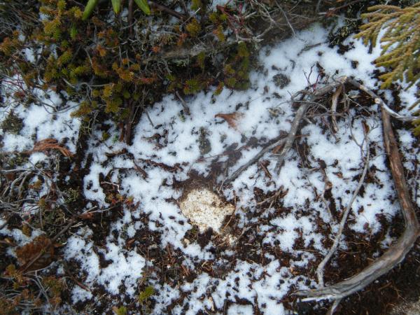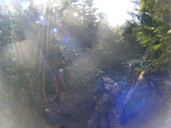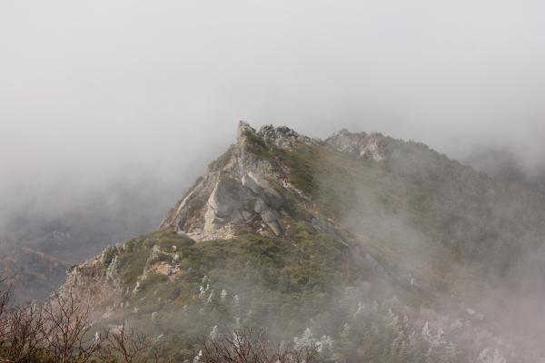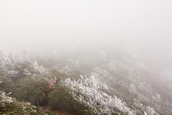 当日は10月下旬にて気温も下がり稜線上は少しの雪と樹氷を観察でき、下界の紅葉と打って変わって冬山の到来を告げていました。気温的にもかなり低く(稜線上の気温は0℃以下でした)、予想以上の気温の低下ぶり。