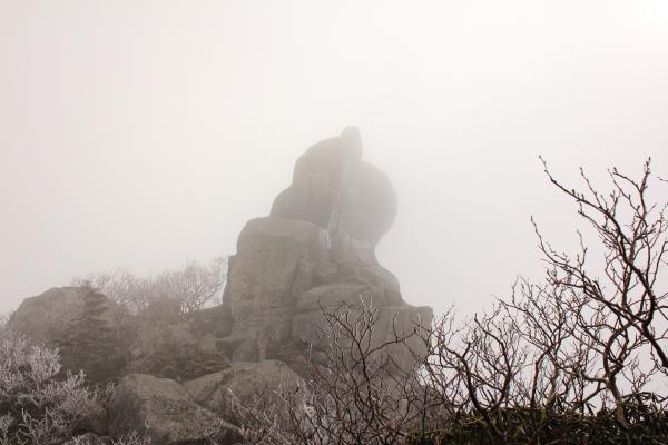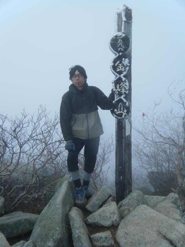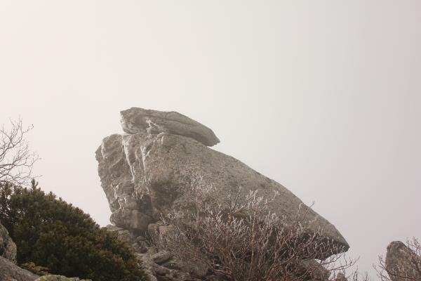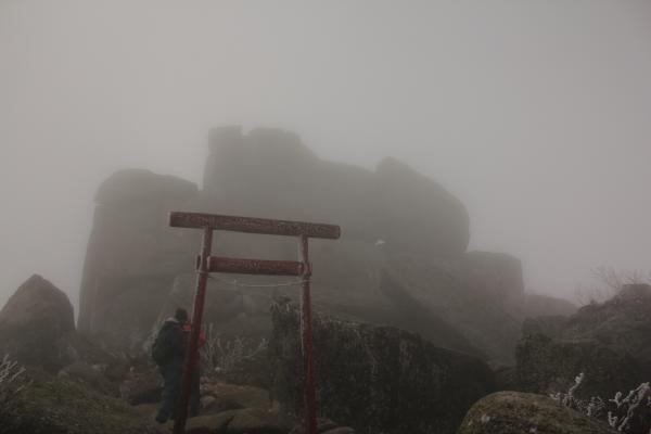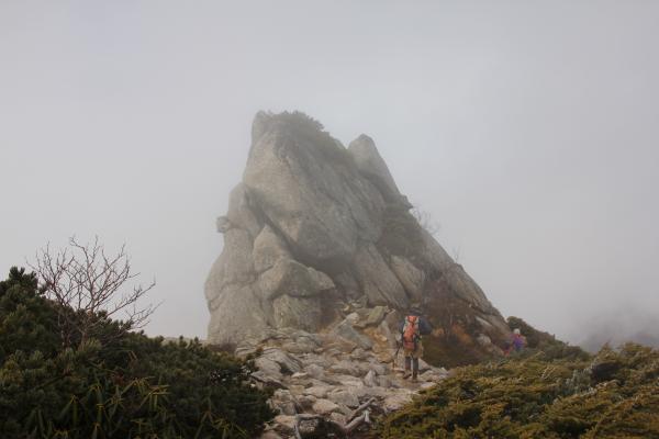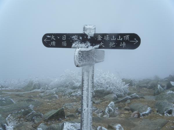 お目当てだった金峰山頂の“五丈岩”はガス曇りのためあまり見れず、少し残念な気持ちです。