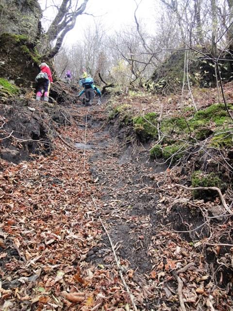 途中、落ち葉に隠れていた落とし穴に片足がズボッ!