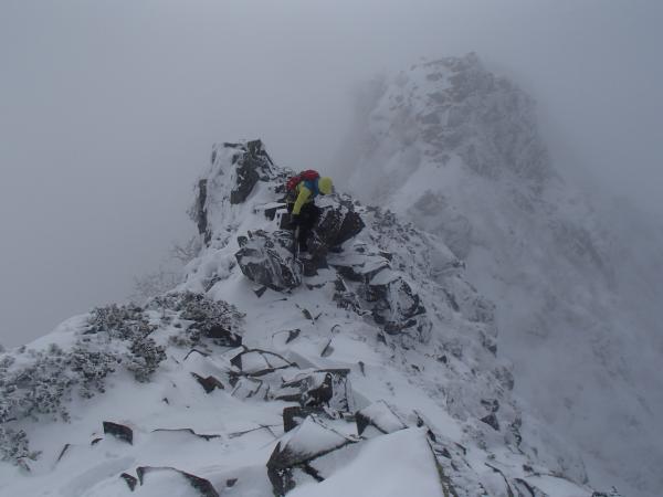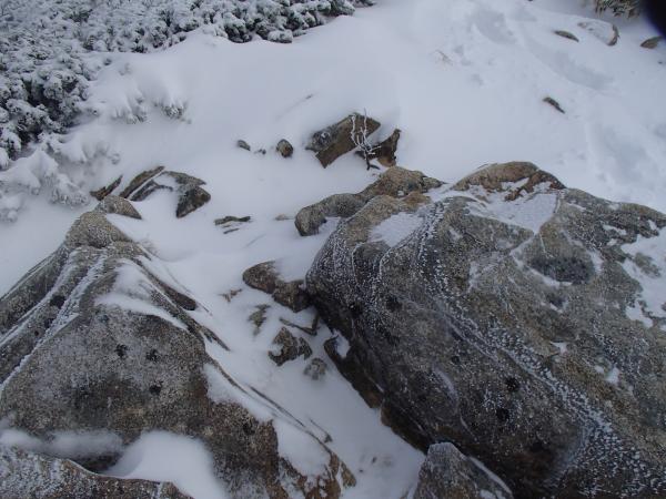 厳冬期のもっともっともっと強い風とラッセルも辛いけど、この時期の岩だらけの上をアイゼンで歩くのも難しい。