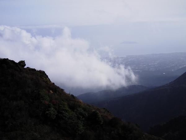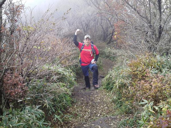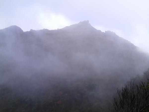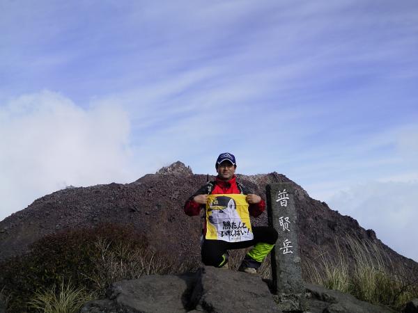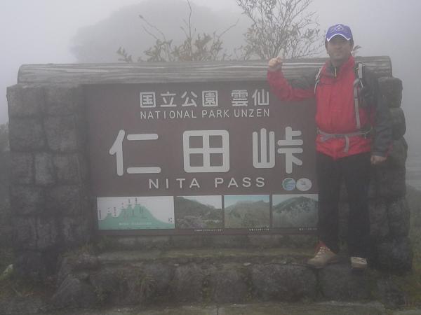 長崎県に入ると少し天候はよくなってきましたが、登山口の仁田峠はガスガスで何も見えませんでした。しかし、あきらめずに登って行くとだんだんとガスが切れ始め山頂近くではこれまでの天候とはうってかわって晴れ間が広がりました。山頂からは360度の展望が楽しめました。