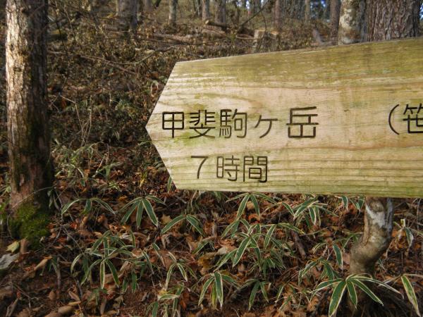 竹宇神社前駐車場⇒(120分)笹ノ平分岐⇒(110分)刀利天狗⇒(55分)五合目⇒(60分)七丈小屋⇒(50分)八合目御来迎場⇒(90分)甲斐駒ヶ岳山頂