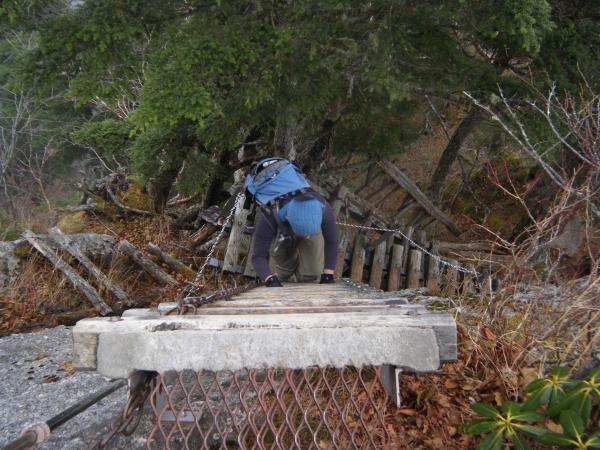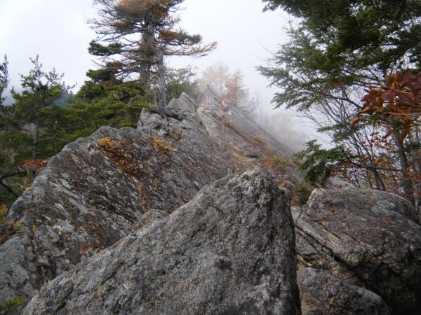 - しばらく樹林帯の急登が続き、鎖場やハシゴを超え、やがて稜線へと出ます。
