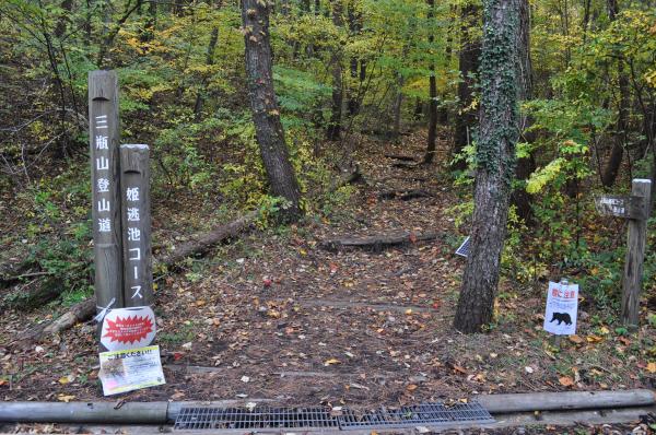 - 10:05 姫逃池コース登山口→(100分)→男三瓶山→(55分)→女三瓶山→(70分)→北の原登山口→(10分)→姫逃池コース登山口