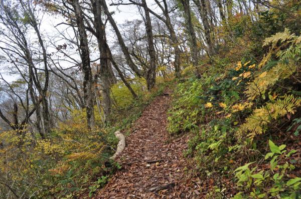 ブナやカラマツがあり、登山道が黄色やオレンジ色に染まっていてとても気持ちいい。