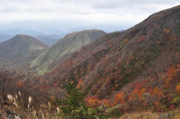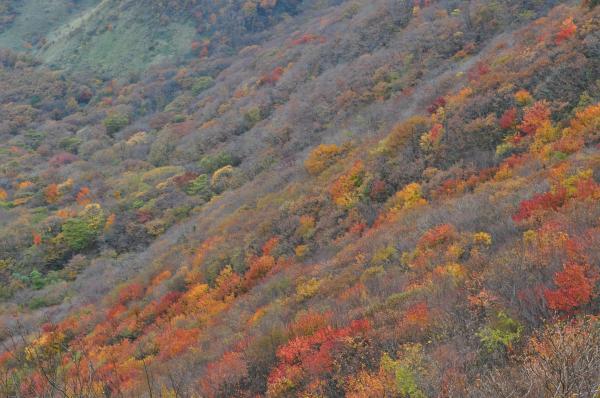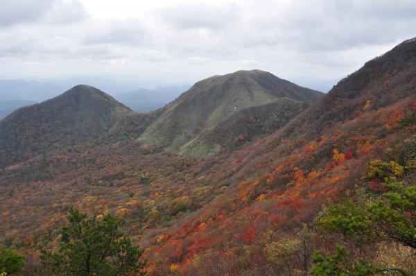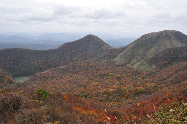 右手に子三瓶山と孫三瓶山が見え、その麓の旧火口に広がる紅葉がとても美しい。