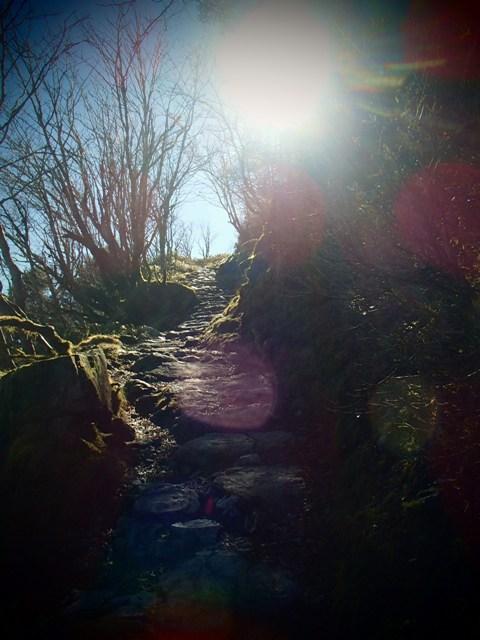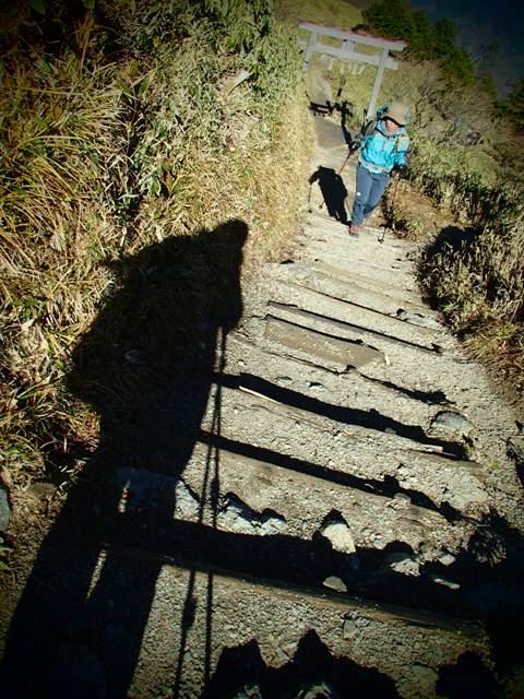 登山道ですが、前日が雨だったので、頂上付近の木の階段は凍っている箇所がありました。