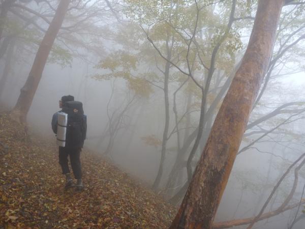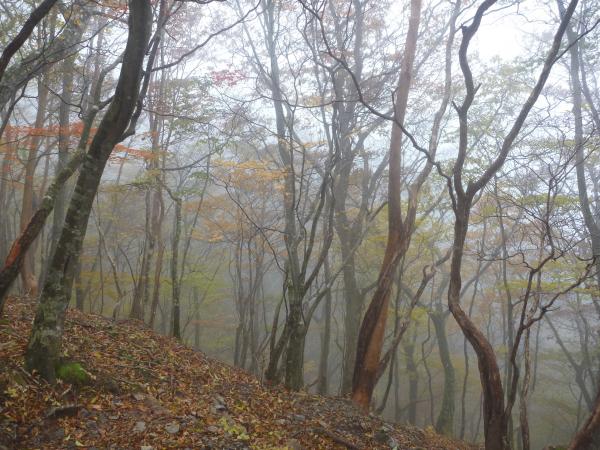 天気は途中から雨になってしまいましたが、山腹では綺麗な紅葉が見れました。道もなだらかな所が多く、のんびりとした山歩きが楽しめました。明神平では、ブナなどの森が霧の中に幻想的に浮かび上がり、落ち着いた山の雰囲気を味わうことができて楽しかったです。