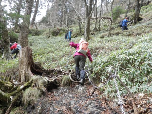 - 登山道はしっかり整備されており、安心して歩けます。梯子や急角度の鉄製の階段が結構あり、濡れているような状況では注意が必要です。今回は通らなかった周回コースは難易度が上がりますので、予定している方は、コースタイムには余裕をもって臨んで下さい。また、これから登山される方は、アイゼンを必ず持参して頂いた方が良いと思います。