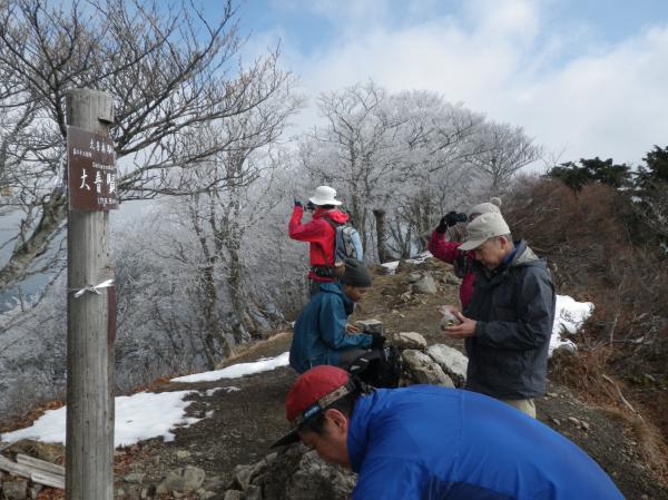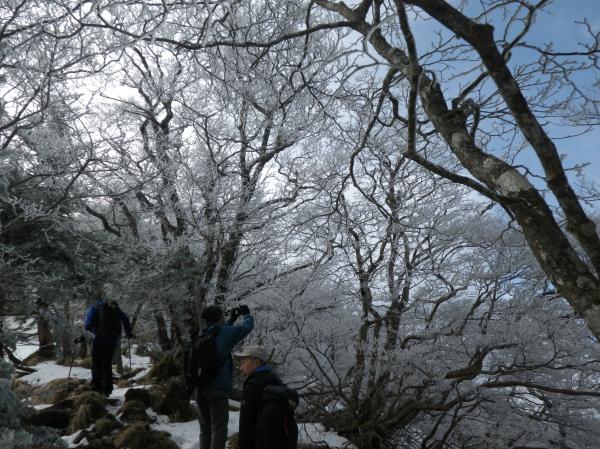 紅葉の名残を期待しておりましたが、残念ながら、完全に落葉しておりました。その代わりに、山頂付近では思いもよらず、美しい樹氷が見れました。この時期の山容の変化は激しく、改めて事前準備の重要さを思い知りました。これ以降は本格的に冬山へと変貌していく為、しっかりとしたウェアリングをした上での登山を楽しみたいものです。