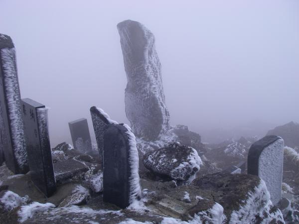 初日は月山!!なのですが、ガスガスで寒くて寒くて、ビーニーがなくては耳が冷た過ぎます。