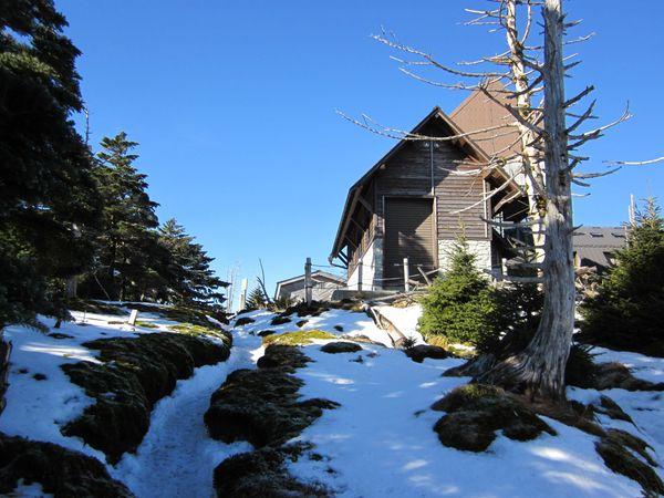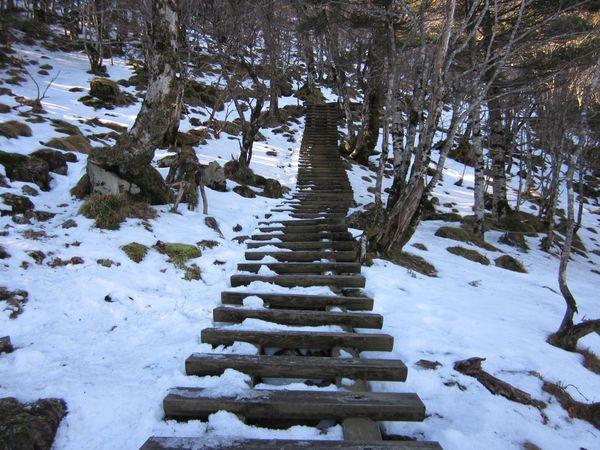弥山小屋に近づくにつれ、前々日に降った雪が凍り非常に滑りやすくなっていました。