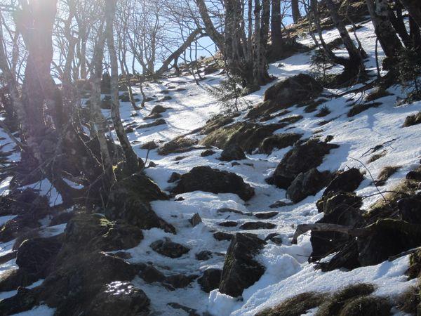 その後の下山は登りが急だったのと、雪が凍って非常に滑りやすくなっていたのでより慎重に下りました。
