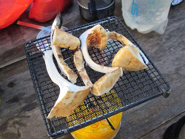 マツタケは網焼きにし酢だちを搾り、芋煮はシンプルな味付けの具沢山で煮込みました。