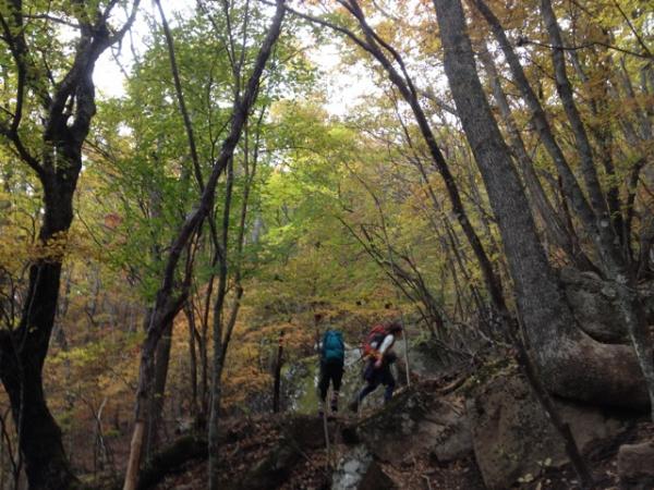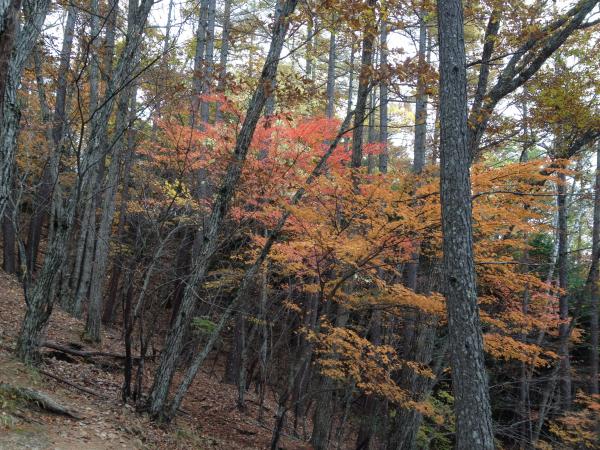 紅葉の時期は毎年少し違うかと思いますが、今回はちょうど見ごろで素晴らしかったです!ちなみに余談ですが、富士見平小屋のご主人曰く「紅葉が終わった頃、色づいた葉が登山道を埋め尽くす時期が一番いい」のだそう。理由は上を見ずとも紅葉を楽しめるから。確かに、色とりどりの落ち葉の上をカサカサ踏みしめて歩く瑞牆山もなかなか乙かもしれません。つまりシーズンを外しても楽しめる山、ということでしょうか。皆様も是非登ってみて下さい。