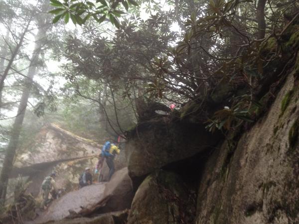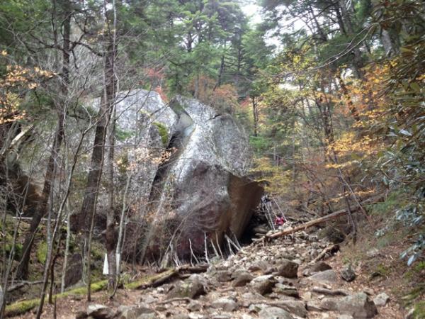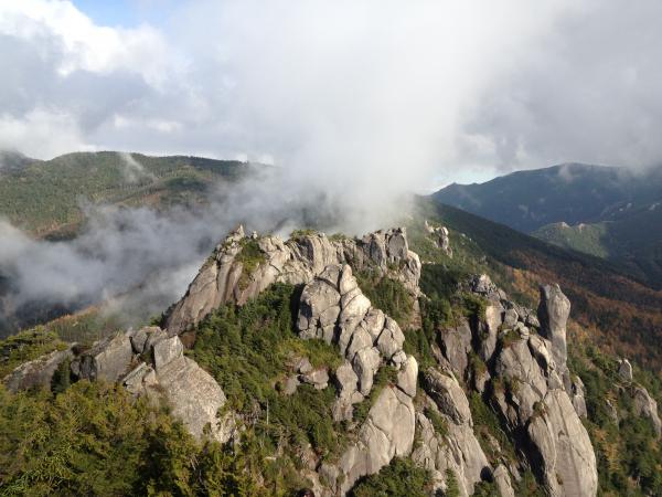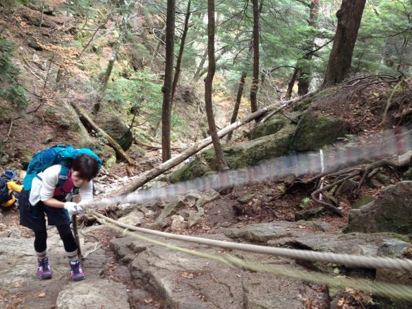 - 岩場やロープが濡れており少々滑りやすかったです。また、紅葉シーズンの週末とあって大変賑わっており、ロープ箇所では渋滞する場面が多く見られました。落石等には十分注意が必要です。