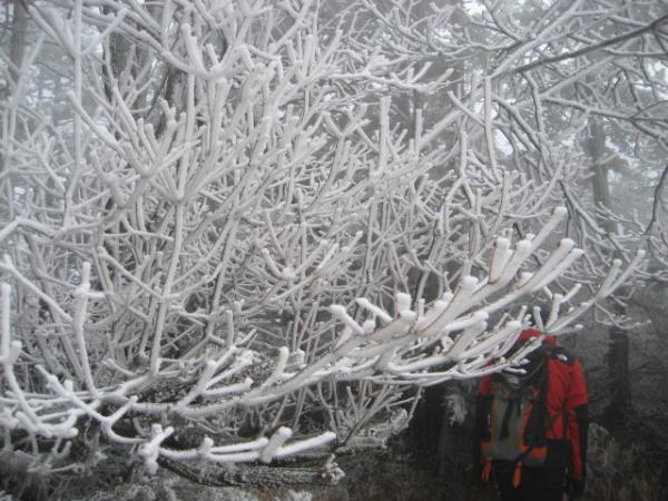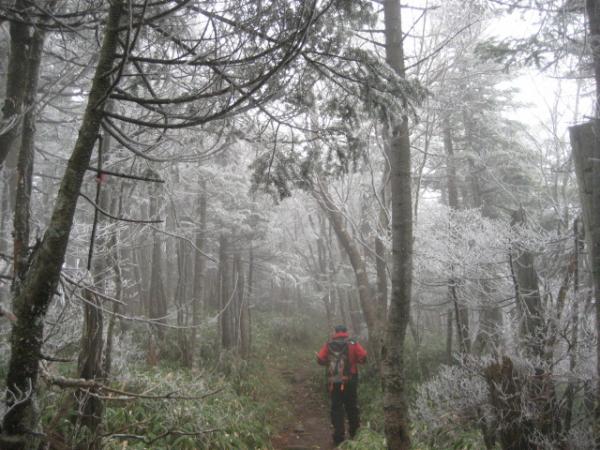 頂上付近では想定外に霧氷が見られ、もう冬の始まりのように寒さを感じました。