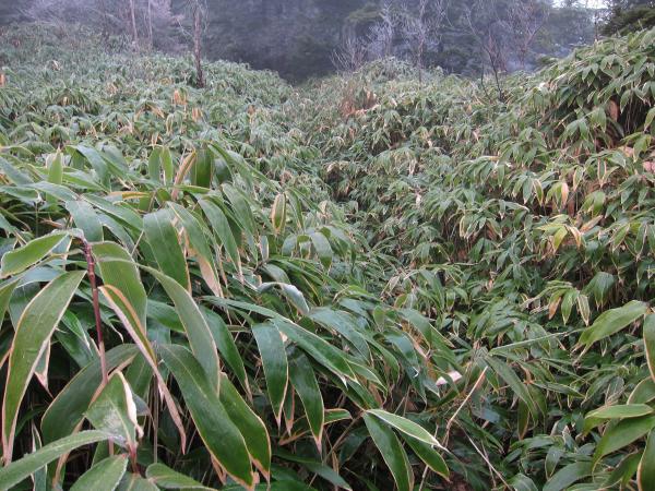 しかも、前日の雨で足場も悪く、生い茂った笹の葉も濡れていたために