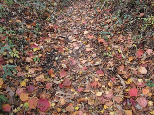 登山道は分りやすく序盤は歩きやすい道でした。東峰への後半は傾斜も急になり、落ち葉が敷き詰められた地面はすべりやすかったです。