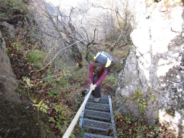 東峰から西峰までの道は鉄梯子を登ったり、少し危険な岩場を鎖をつかって進んだりなど、ちょっとスリリングなルートでした。