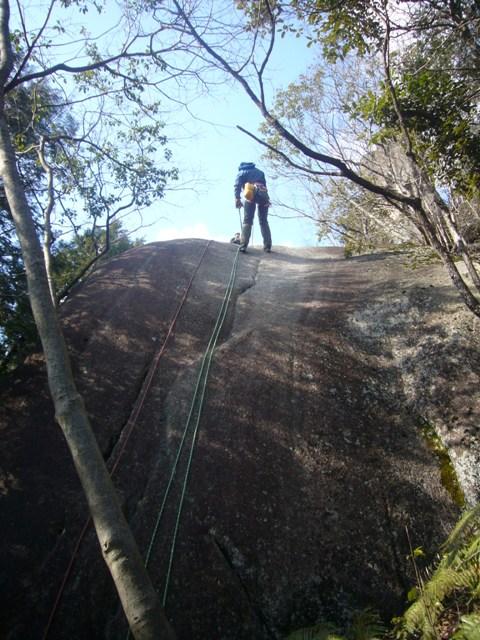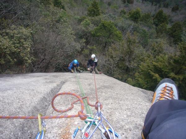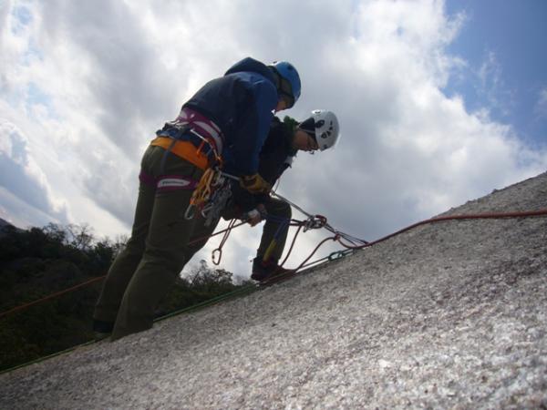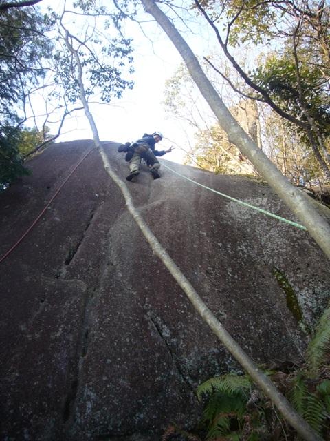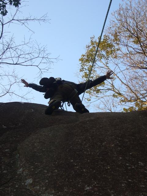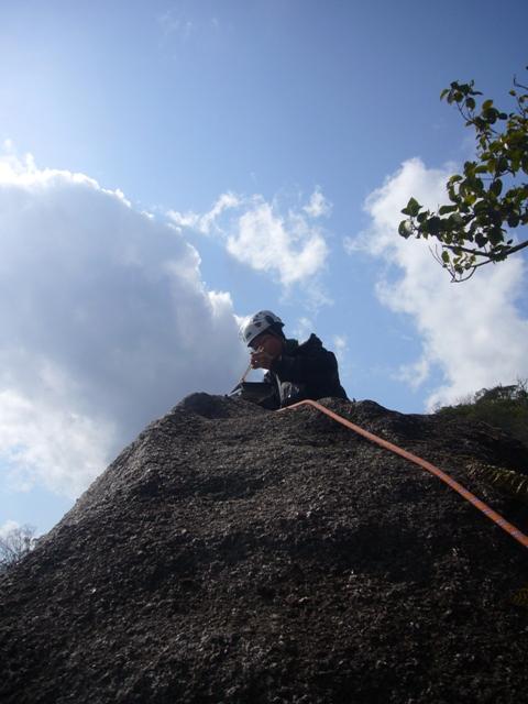高いところはニヤケますね♪とはいってもクライミング技術は赤子レベル。5.10aのスラブでソールはツルツル~。経済的にもうまくなりたいものです。