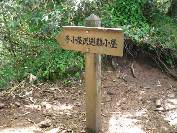 - 頂上から40分ほど手前の連続する鎖場以外は危険箇所はありません。手小屋沢避難小屋は分岐から7~8分山頂方面先に行き、下った所にあります。