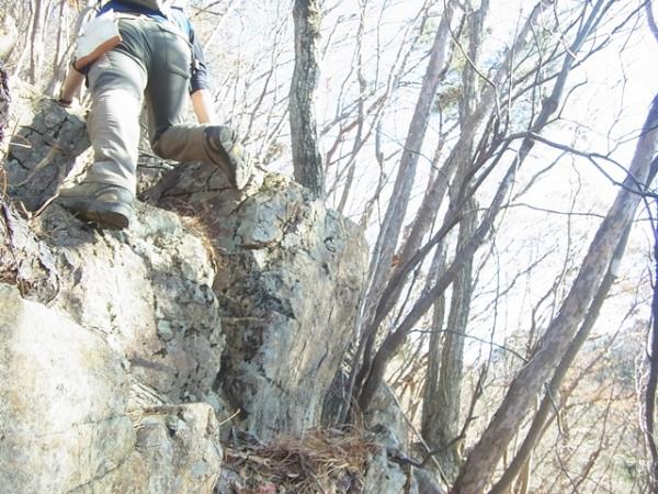かまど倉の直前に大岩があり 7mほど懸垂下降しました。以前はザイルがあったようですが