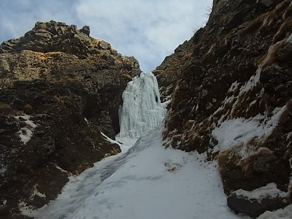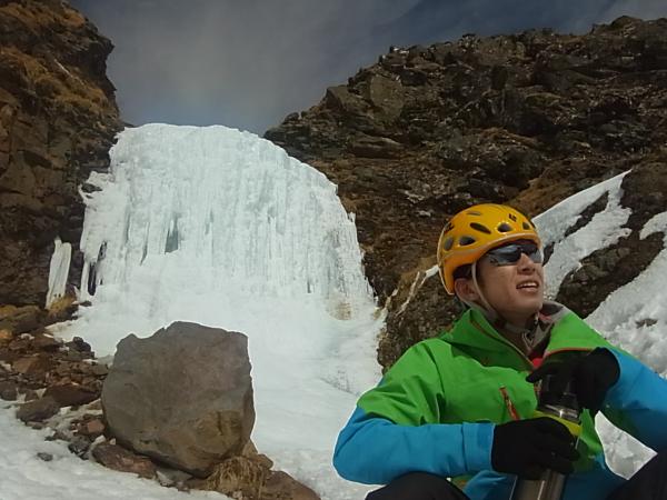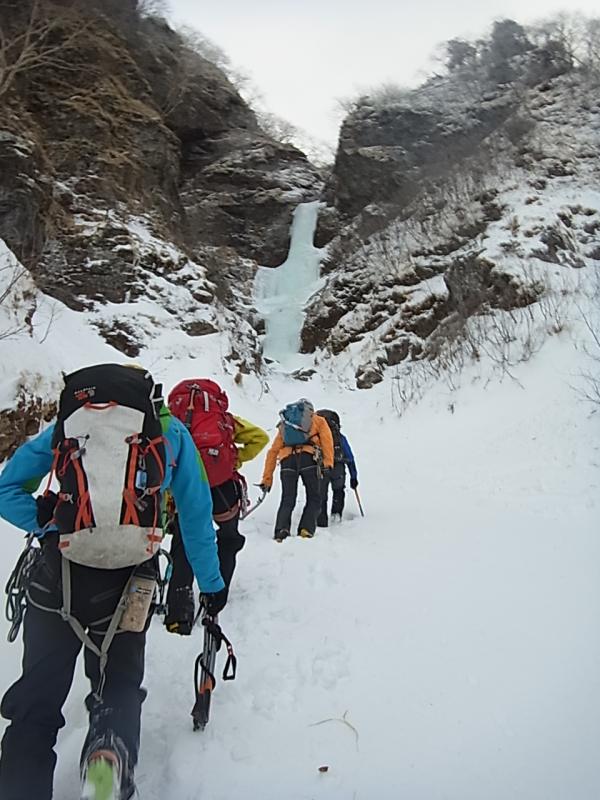 ジョウゴ沢の大滝は少し細いものの、十分登れる大きさです。