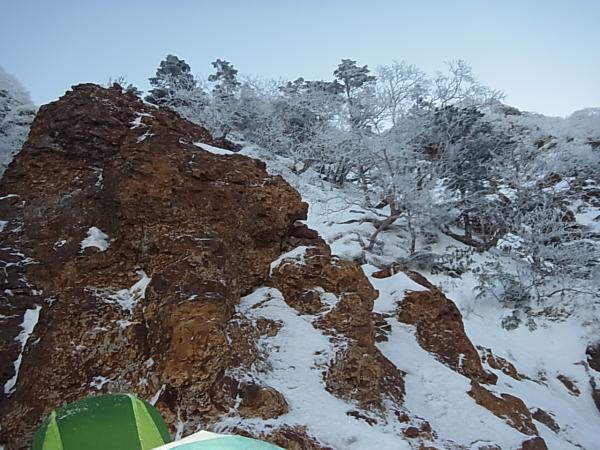 そこから硫黄岳方面へ少し歩いて、大同心ルンゼを下降。