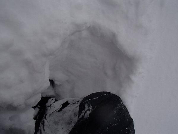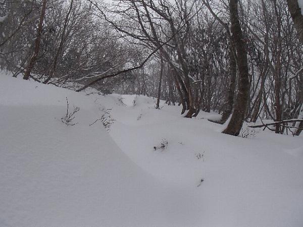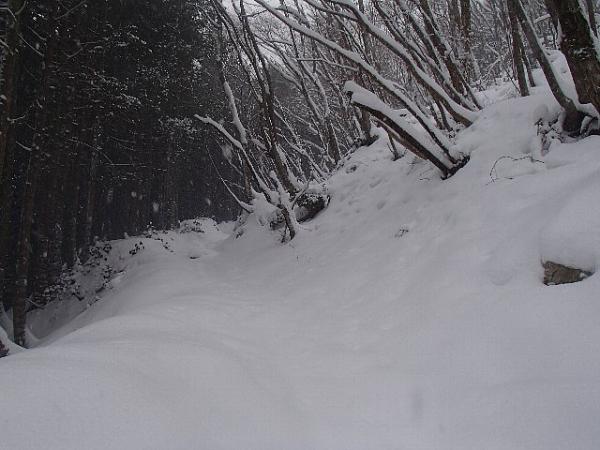 暖かい日があり、その後の寒波が来て2日目、上に登るごとに雪が深くなりました。