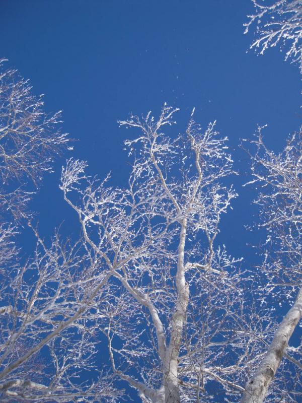 風の当たる箇所はクラストした雪面が出ており、注意が必要です。