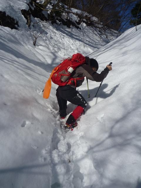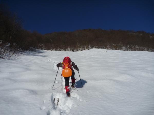 は、トレースがあり、スノーシューがなくても歩けそうですが、ワカン