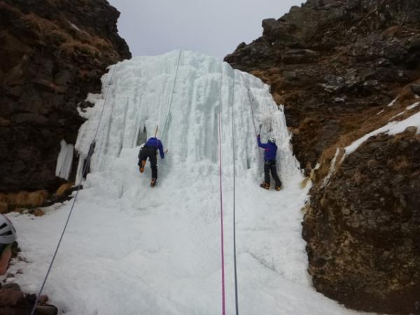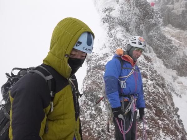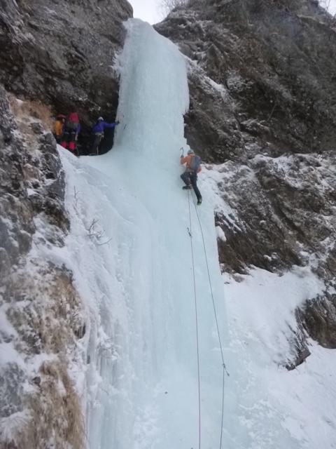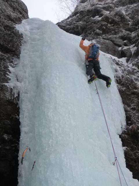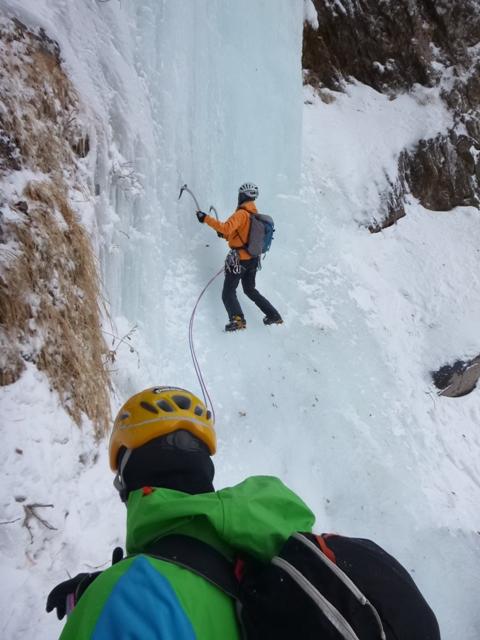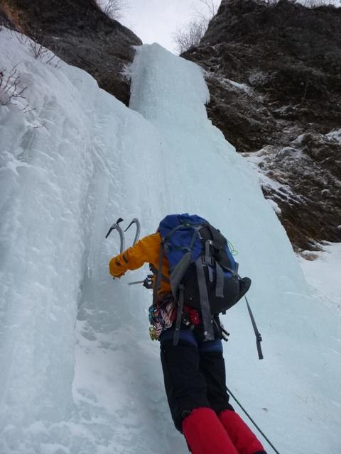 先行パーティーの待ちで凍えたものの、快調にロープを2ピッチ伸ばし、