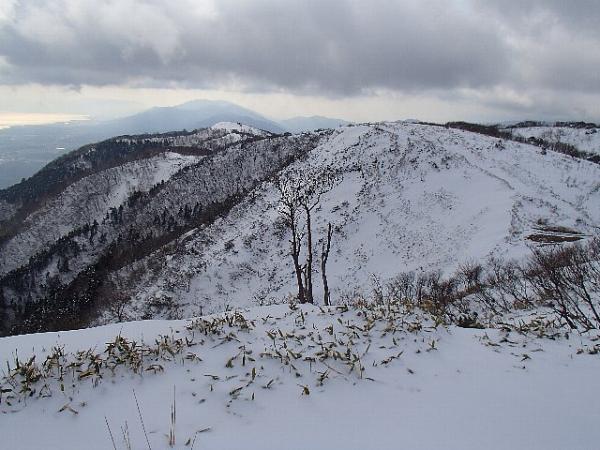 小女郎峠から蓬莱山までなだらかな稜線が続き、スノーシューで歩くのに適していました。