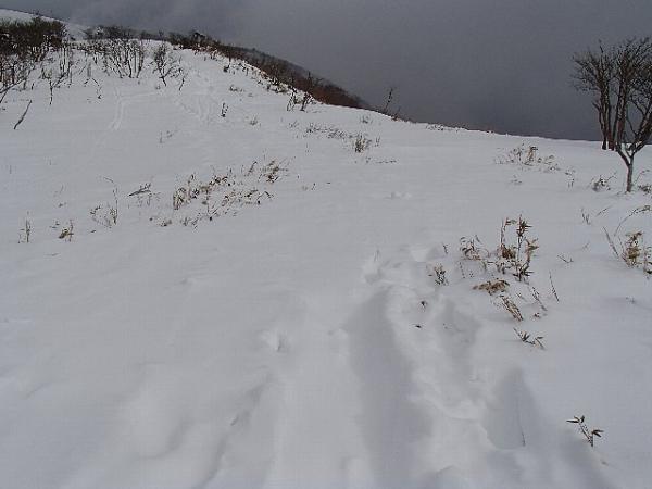 稜線上ではトレースが消えているところもありましたが、方向を見失なわない事と稜線の端に寄り過ぎる事に注意すれば問題ないように感じます。