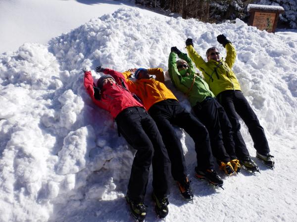 - 【1日目】赤岳山荘10:00-北沢コース-11:45赤岳鉱泉--ジョウゴ沢へ(アイスクライミング)