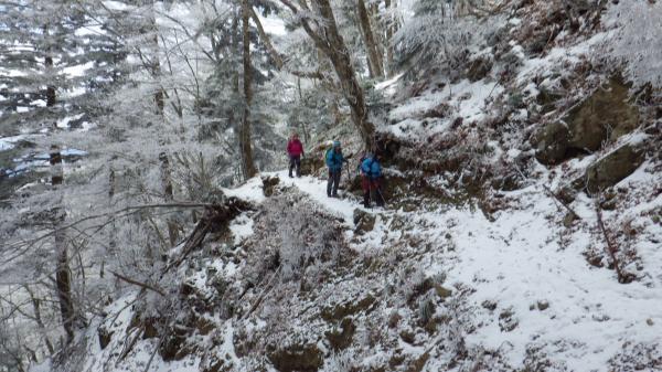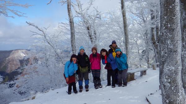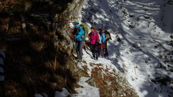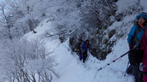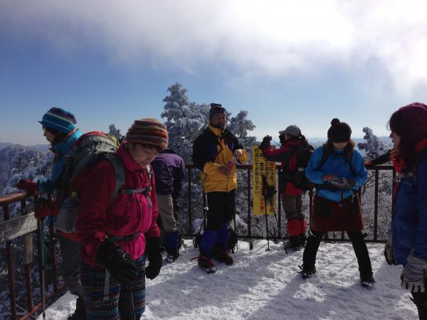 仲間との新春登山第1弾。4日前に下見に登っていましたが、前日に降雪があったようで山上辻辺りからは楽しい雪上歩きができました。
