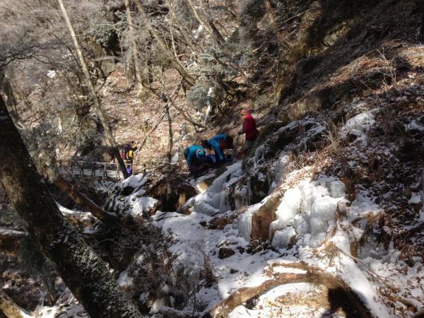 天気が良かったため、帰るころには南側斜面の雪は結構少なくなっていましたが、凍結箇所もあるので慎重に通過しましょう。
