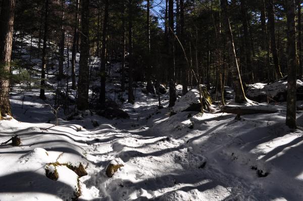- しばらく雪が降っていなかったようで、今回通ったルートはトレースがしっかりしており、雪も固く締まっており大きな危険はなかった。