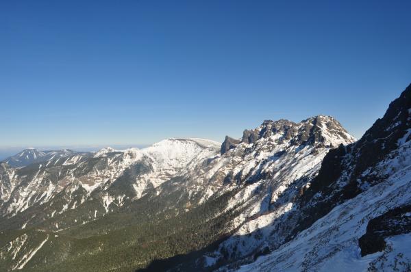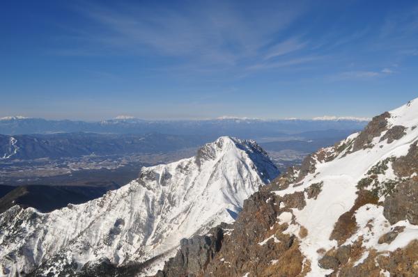 富士山、南アルプス(鳳凰山、北岳、甲斐駒、仙丈ケ岳…)、南アルプス(木曽駒、宝剣…)、御嶽山、北アルプス(乗鞍、穂高連峰、槍ヶ岳…)、浅間山