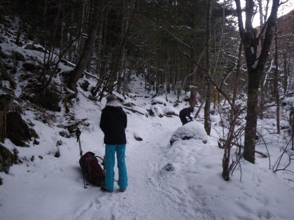 通常の登山道は、所々に凍っているので転倒注意。