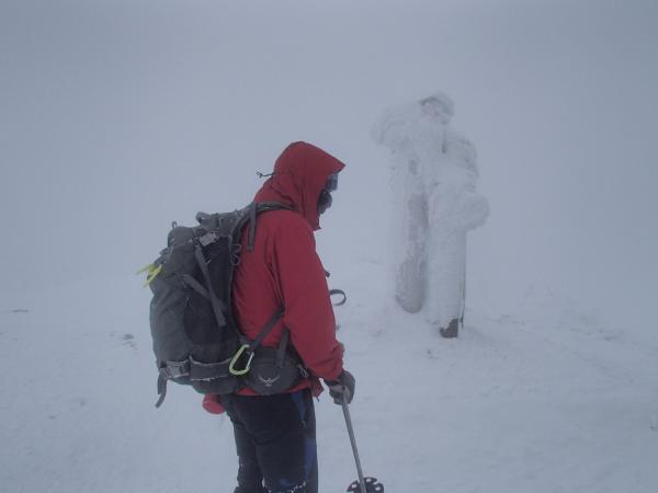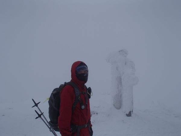 仙谷から山頂直下最低鞍部に飛び出しましたが、山頂付近は烈風と、ガスが濃く