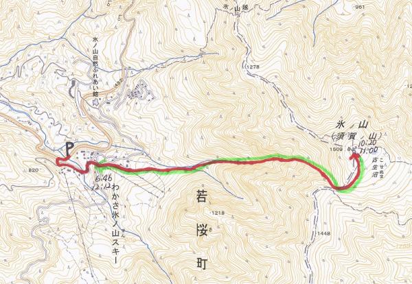 - ゲレンデ下800m発6:46→(214分)→氷ノ山山頂1510m着10:20~発11:00→(72分)→ゲレンデ下着12:12