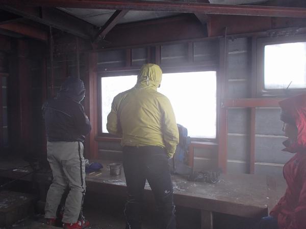 山頂小屋内気温ー8.6度 風10m以上(計測できませんでした)個人の感想では