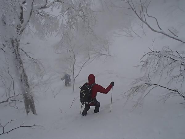 氷ノ山 仙谷BC 烈風の中で激ラッセル